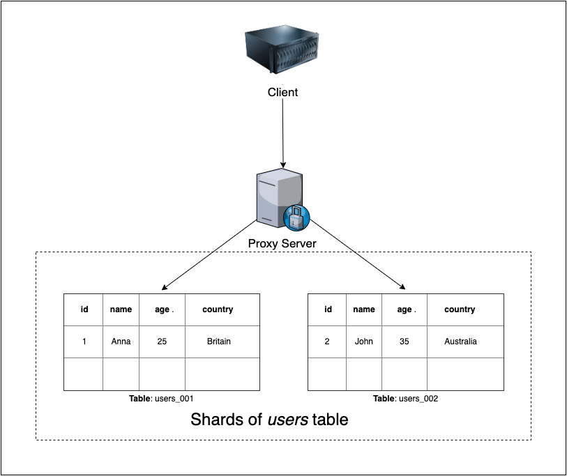 Client-side 不是直接調用分區,而是向 Proxy server 發出請求,Proxy server 根據分區的方式將請求轉發到正確的資料庫。
