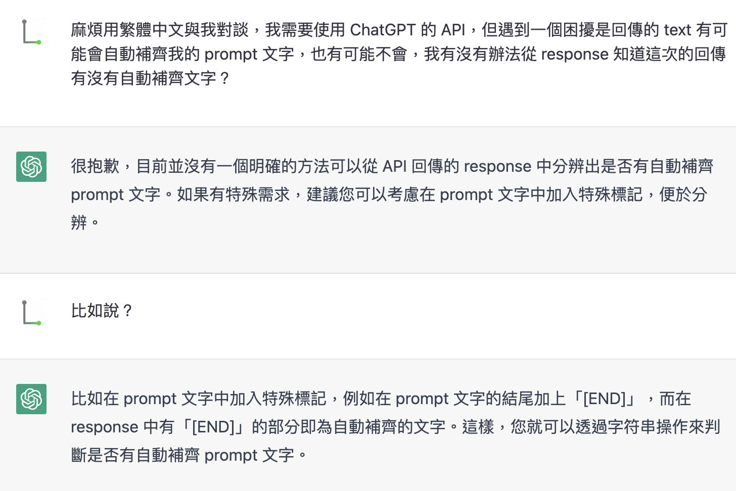 在使用 API 的時候,有兩個使用技巧是透過詢問 ChatGPT 知道的。
