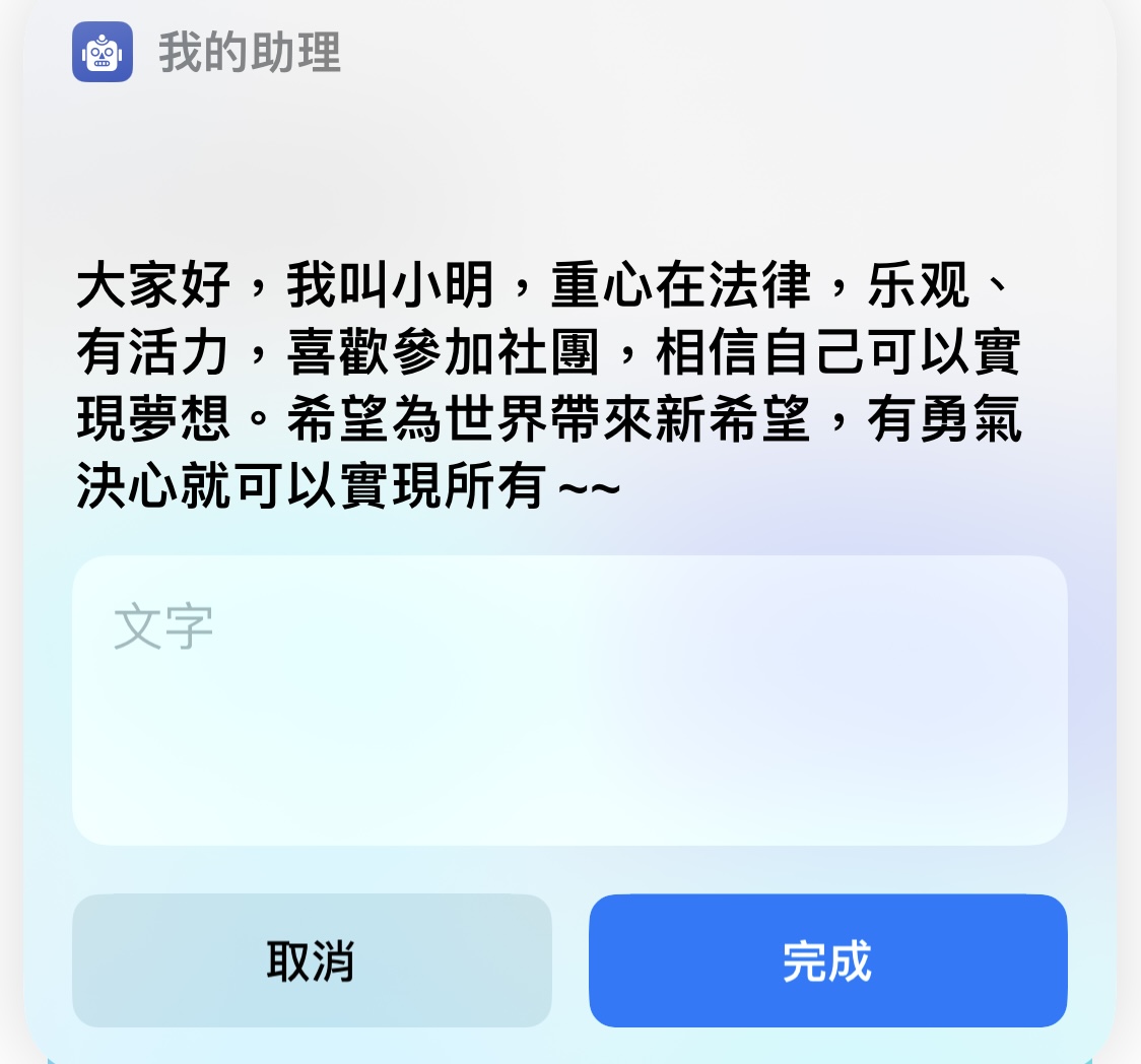 既然可以透過 Siri 操作捷徑,那其他可以執行 Siri 的裝置也可以透過這捷徑跟 GPT 互動,像是 HomePod、Apple Watch、Apple TV。